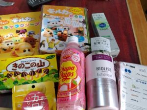 息子も娘もお菓子と絵本、とても喜んでいます。